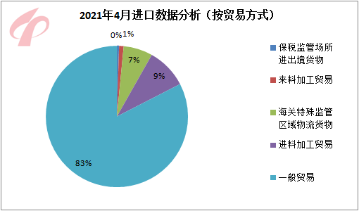 2021年4月聚乙烯貿(mào)易方式方面,一般貿(mào)易領(lǐng)域占比83%,環(huán)比下降約25%,進(jìn)口數(shù)量約102.19萬(wàn)噸。進(jìn)料加工貿(mào)易占比9%,環(huán)比下降約23.36%,進(jìn)口數(shù)量約11.44萬(wàn)噸。保稅區(qū)倉(cāng)儲(chǔ)庫(kù)存占比約7%,環(huán)比下降約31.94%,進(jìn)口數(shù)量約8.24萬(wàn)噸。從貿(mào)易方式變化來(lái)看,外貿(mào)加工領(lǐng)域收到一定沖擊,保稅區(qū)倉(cāng)儲(chǔ)庫(kù)存壓力下降,進(jìn)口聚乙烯內(nèi)需占比提升。